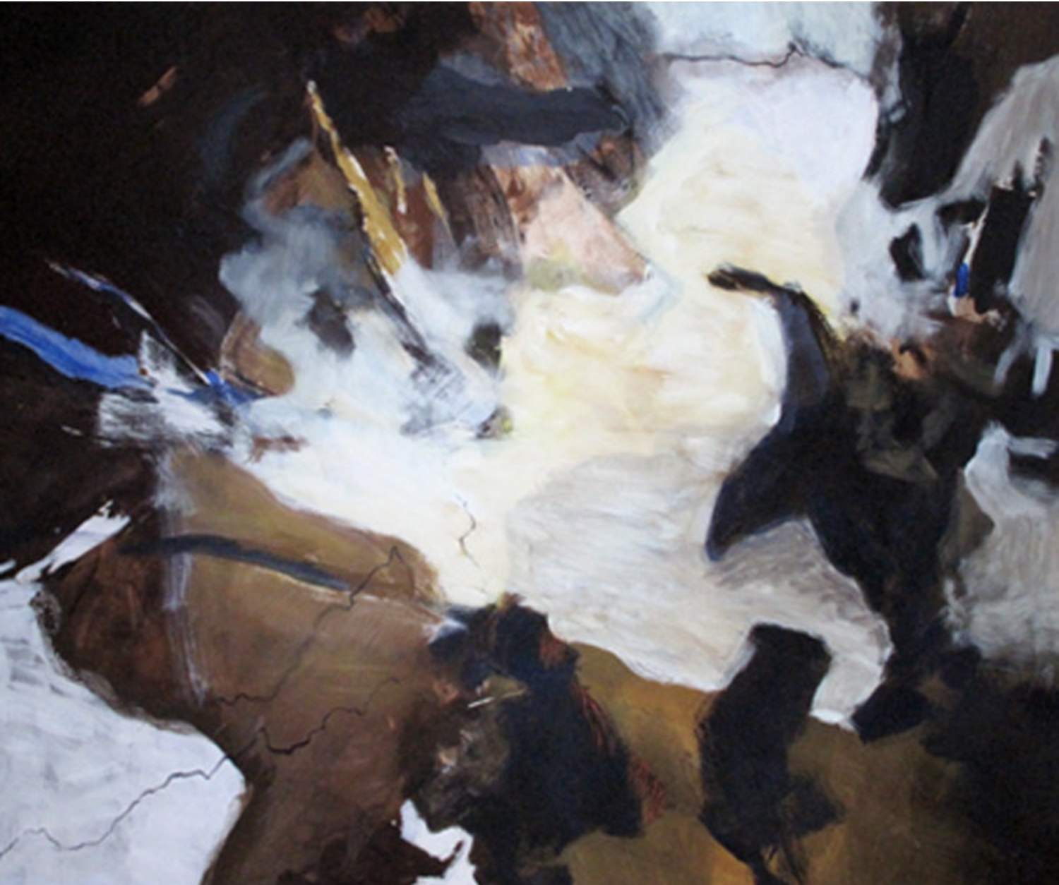 ![]() | Østlandsutstillingen "Til jord", format 115 x 140 cm, utstilt påMaria Veie Sandvik: Kari Nordheim har laget et verk som både kan leses som abstrakt og som et landskap. Verket domineres av et hvitt midtfelt som strekker seg og flommer ned fra høyre del av bildet som en sprutende foss. Vassdraget omkranses av brune steiner, drivved og kvister. På tross av bildets figurative karakter er det slående friskt uten tilsnitt til bruk av klisjeer eller enkle virkemiddel. Tittelen "Til jord" gir assosiasjoner til begravelse - kan vi skimte noe som er dødt? Nordheim utfordrer oss med denne tittelen til å sette fokus på hva som er skjedd i det området som oversvømmes. |