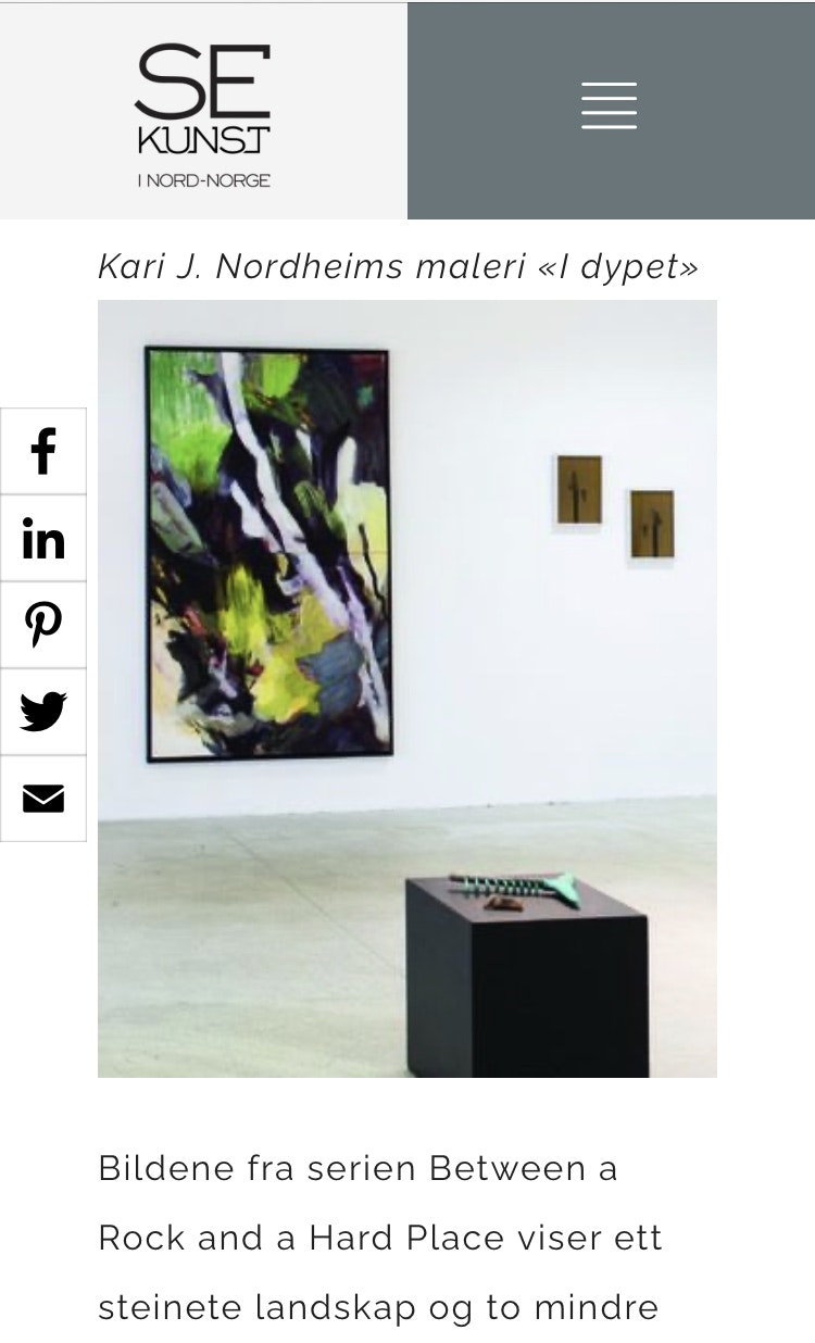 | KUNSTKRITIKKDen 74. Nordnorske kunstutstilling 2020Den 74. Nordnorske Kunstutstilling preges mer av nysgjerrighet og søken, enn bastante svar og høye rop. Og heller enn å være et samstemt kor, domineres utstillingen av sterke enkeltstemmer. Men det betyr ikke at stemmene ikke fortjener å lyttes til. For hele artikkelen trykk HER FOLKEBLADET |